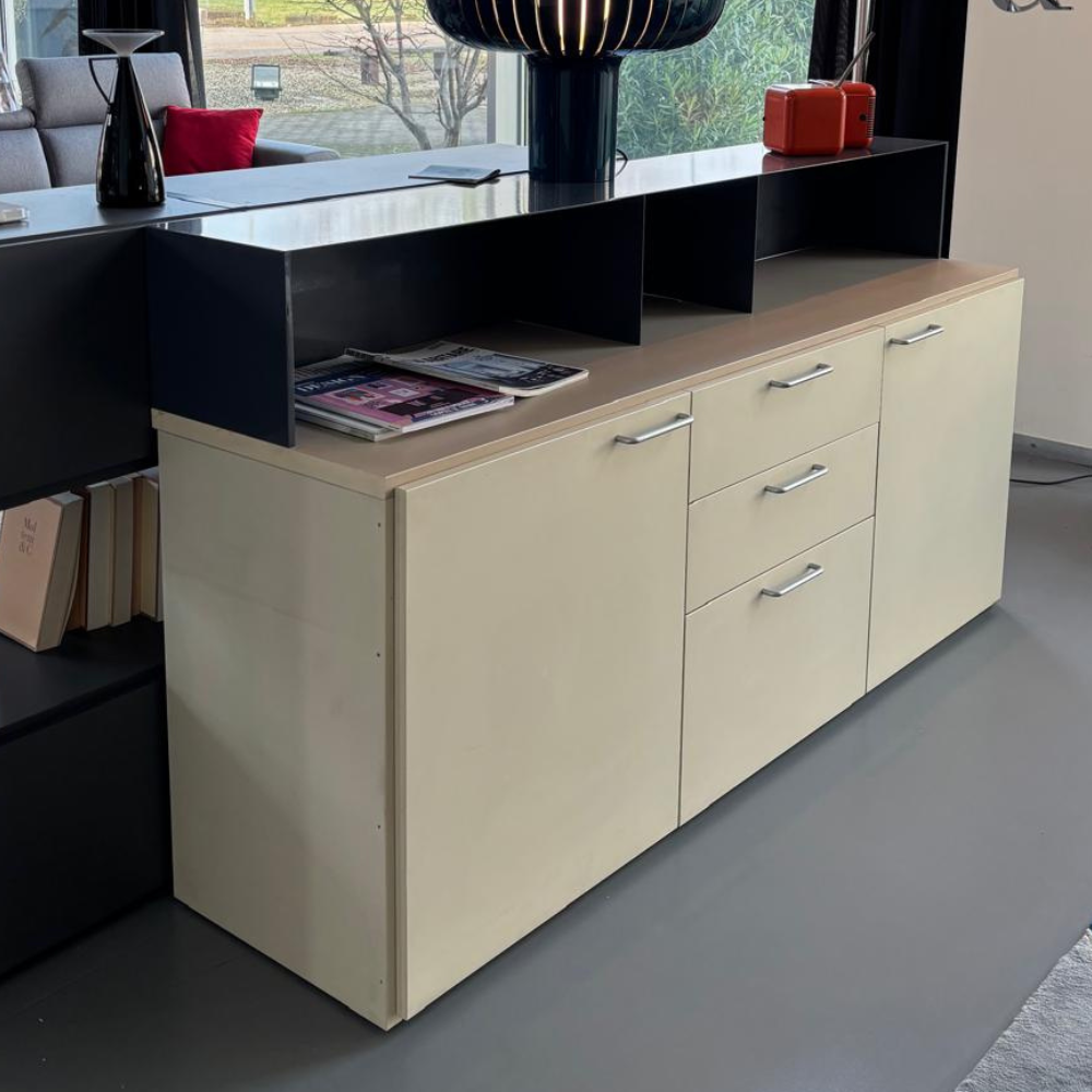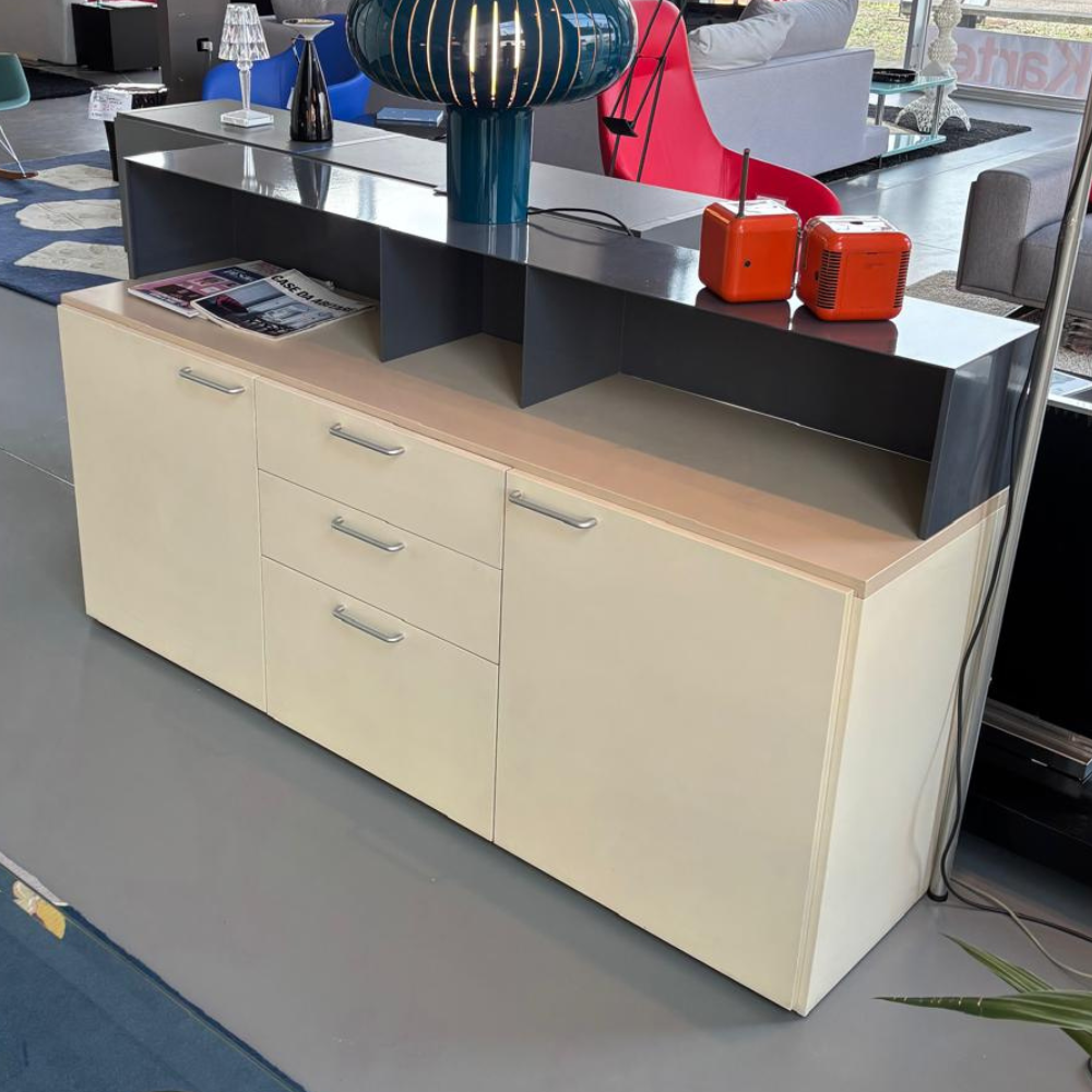 Contenitivo con ante e una serie di cassetti per posate e biancheria per la tavola.