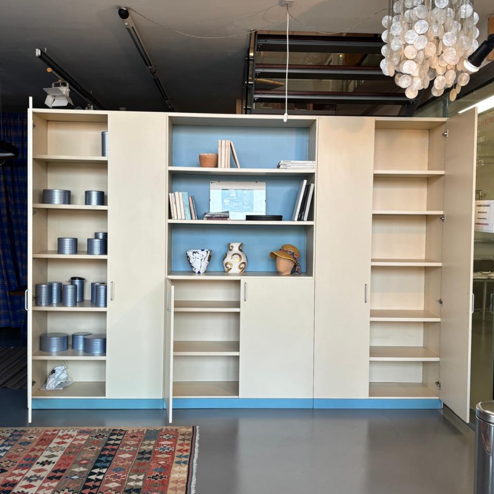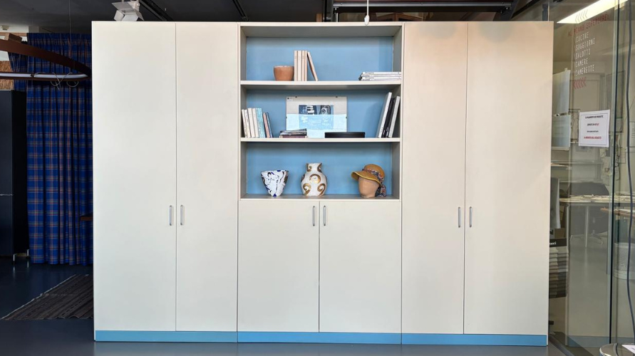 Possibilità di spostare i ripiani interni per ottenere spazi di diverse altezze. Chiuso con ante, rende l’ambiente ordinato ed estremamente “arredato”.